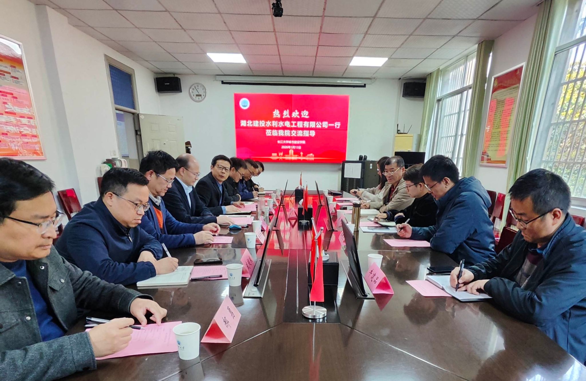 (通讯员 蔡威威)3月13日上午,湖北建投水利水电工程有限公司一行5人来访,双方就深化校企合作、推动产教融合等事宜开展座谈交流。本次到访熟女论坛的有湖北省路桥集团科学技术质量部部长黄锦、科学技术质量部经理程树范,水利公司总工程师张永军、工程技术部部长牛建品、工程技术部经理陈斯。熟女论坛