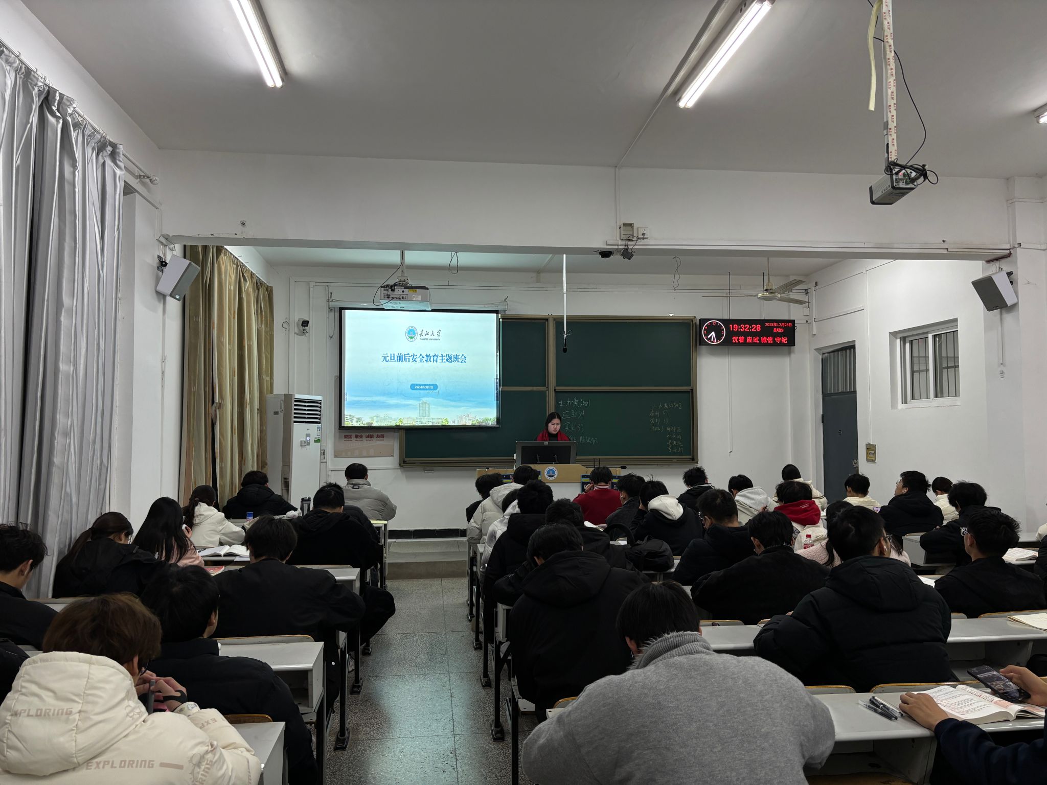 元旦假期临近,城建熟女论坛各班级于12月下旬组织开展了假期安全教育主题班会。班会全面覆盖全院学生,通过案例讲解形式,重点强调了防诈骗、交通安全、消防安全以及电动车规范使用等安全知识。