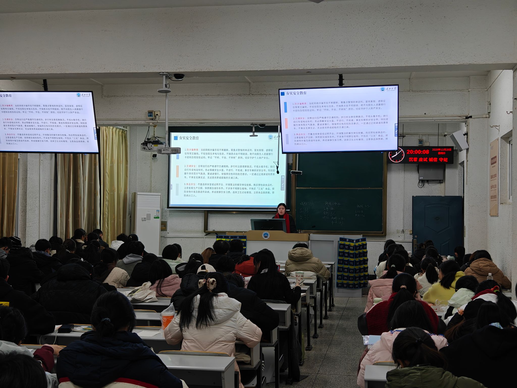 各班班主任在会上阐述了树立安全意识的重要性,做到防患于未然。班会结合冬季特点与假期常见安全隐患,进行了全面细致的安全提醒,旨在提高学生们的安全防范意识和避险能力。班主任详细讲解了假期离校、返校的相关管理制度,对于有离校计划的学生,强调必须严格遵守请销假制度,并及时上报具体行程。