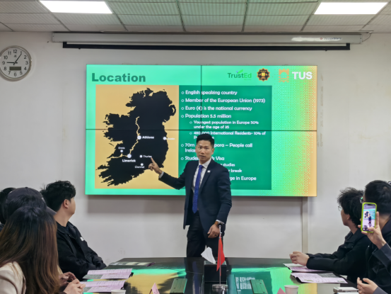 学生国际交流渠道,帮助有出国意向的学生明晰海外升学路径,4月1日,爱尔兰香农理工大学(TUS)亚太地区负责人孟晶一行来校访问,先后在院东校区、西校区举办中外合作专项座谈会。熟女论坛党委副书记周洁如,辅导员胡冰恒、刘安琪、袁子昂及中外合作专业学生参加座谈会。